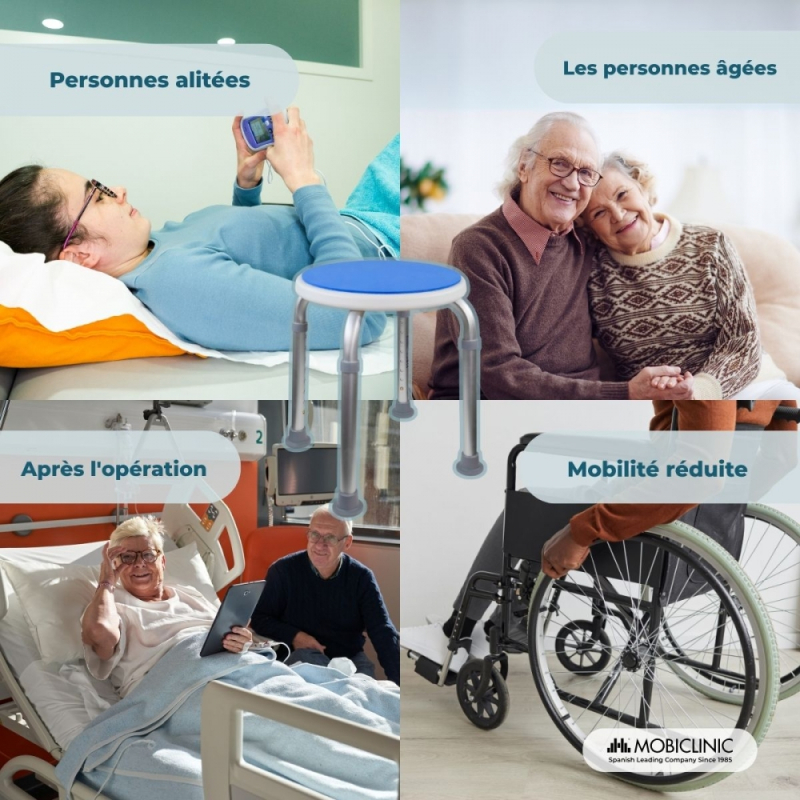 Tabouret de salle de bain | Hauteur réglable | Maximum 100 kg | Embouts et surface antidérapants en EVA | Foco | Mobiclinic