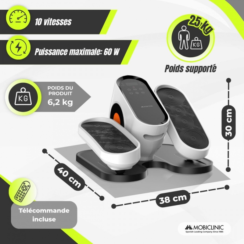 Mini elliptique | Mode manuel et 3 programmes automatiques | Affichage LED | Télécommande | Silencieux | Mobidal | Mobiclinic
