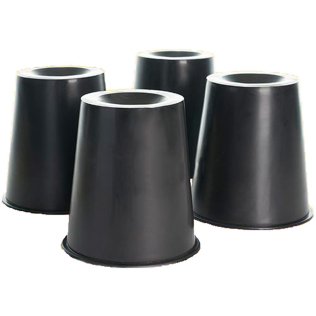 Hanno un'altezza di 15 centimetri ed ogni cono è dotato di un'apertura superiore di 7 centimetri, rendendo i piedini per letti e sedie adatti anche a svolgere la funzione di piedini per divani o qualsiasi altro complemento d'arredo.
