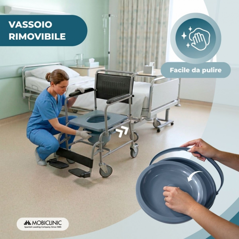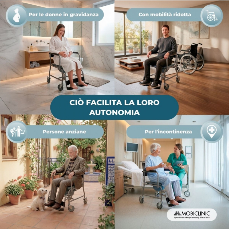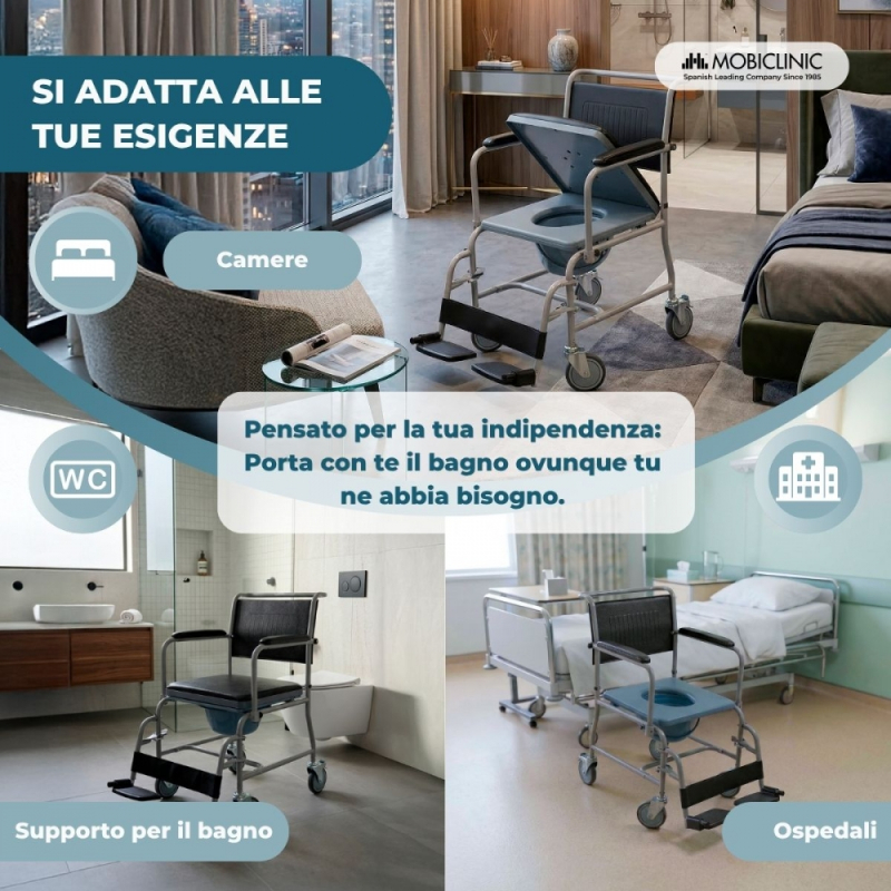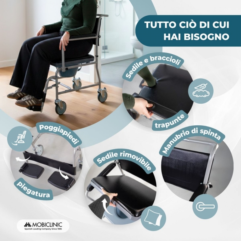 La sedia comoda Ancla offre comfort e facilità d'uso alla portata di tutti. È un prodotto molto apprezzato tra gli assistenti e/o i parenti di persone con disabilità, che sono in qualche processo di riabilitazione o che semplicemente a causa dell'età non hanno più abbastanza agilità per fare affidamento su se stessi durante la pulizia.