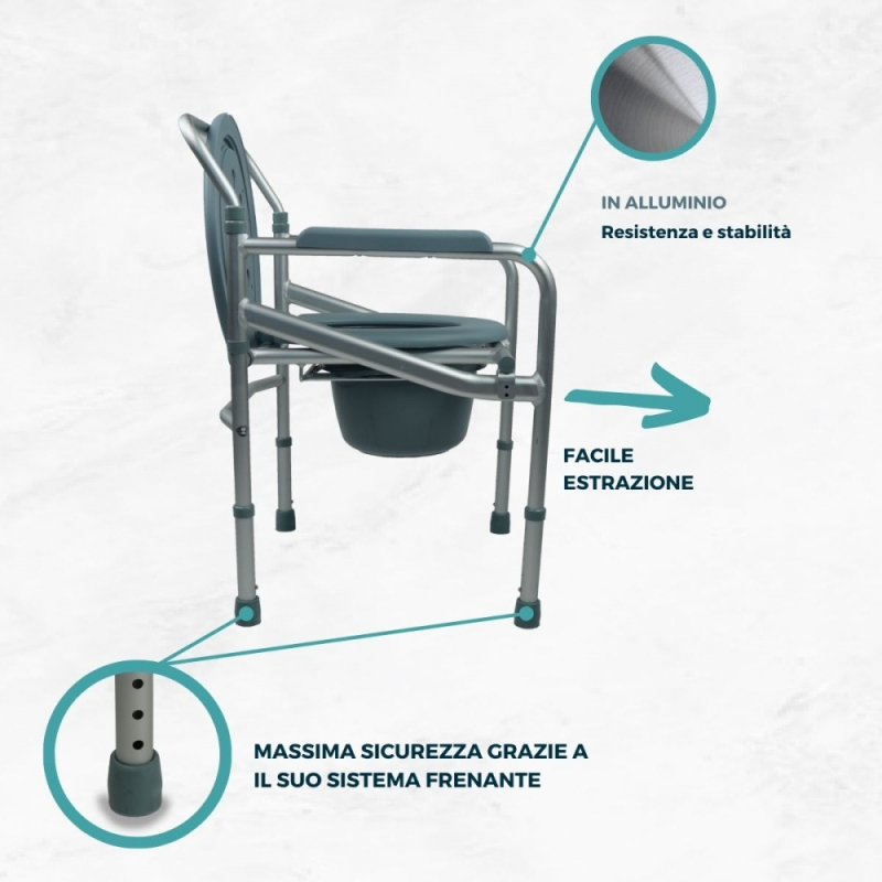 Sedia wc | Pieghevole | Leggera | Con coperchio | Altezza regolabile | Braccioli | Alluminio | Mar | Mobiclinic