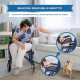 Questa sedia a rotelle è dotata di una leva a pedale, che è di grande aiuto per l'accompagnatore durante la salita e la discesa di piccoli gradini. Questa sedia a rotelle pieghevole leggera ha un set di ruote solide. Questa caratteristica elimina il rischio di subire una foratura accidentale e lo rende il prodotto perfetto per l'uso esterno.