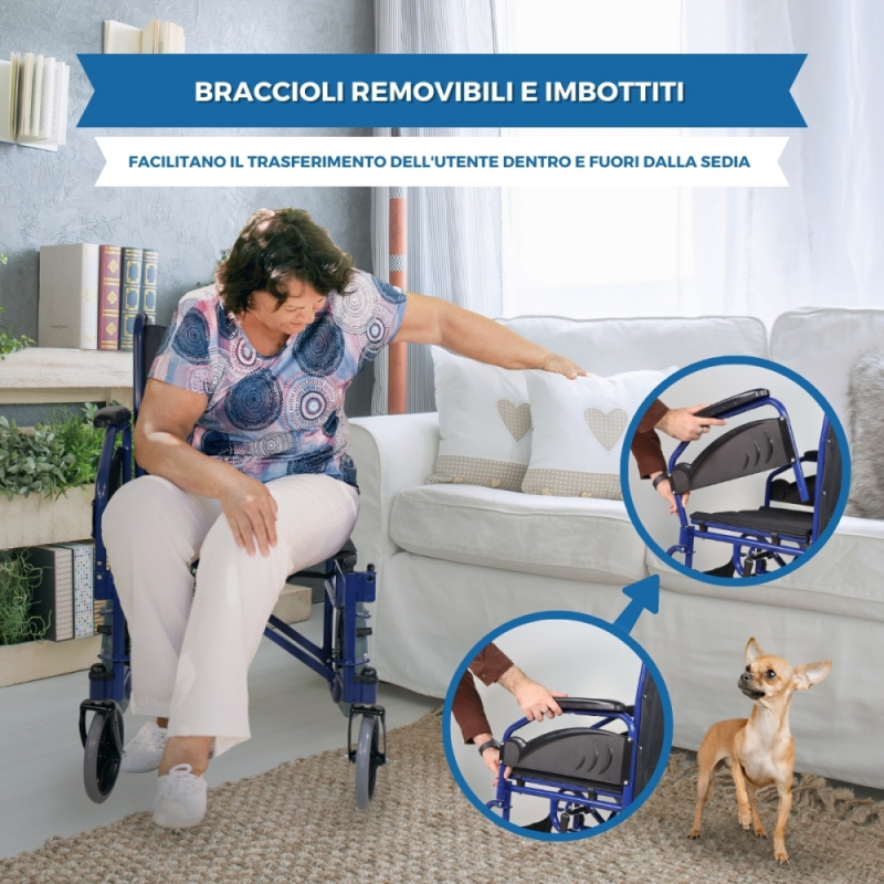 Sedia a rotelle di transito premium | Pieghevole | Braccioli e poggiapiedi rimovibili | Maestranza | Mobiclinic