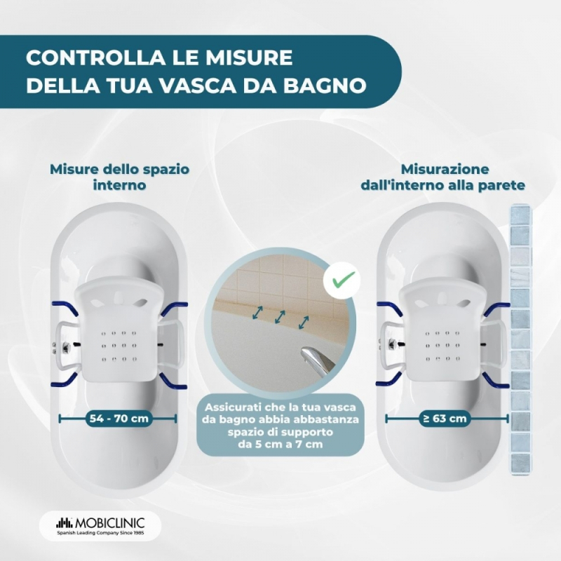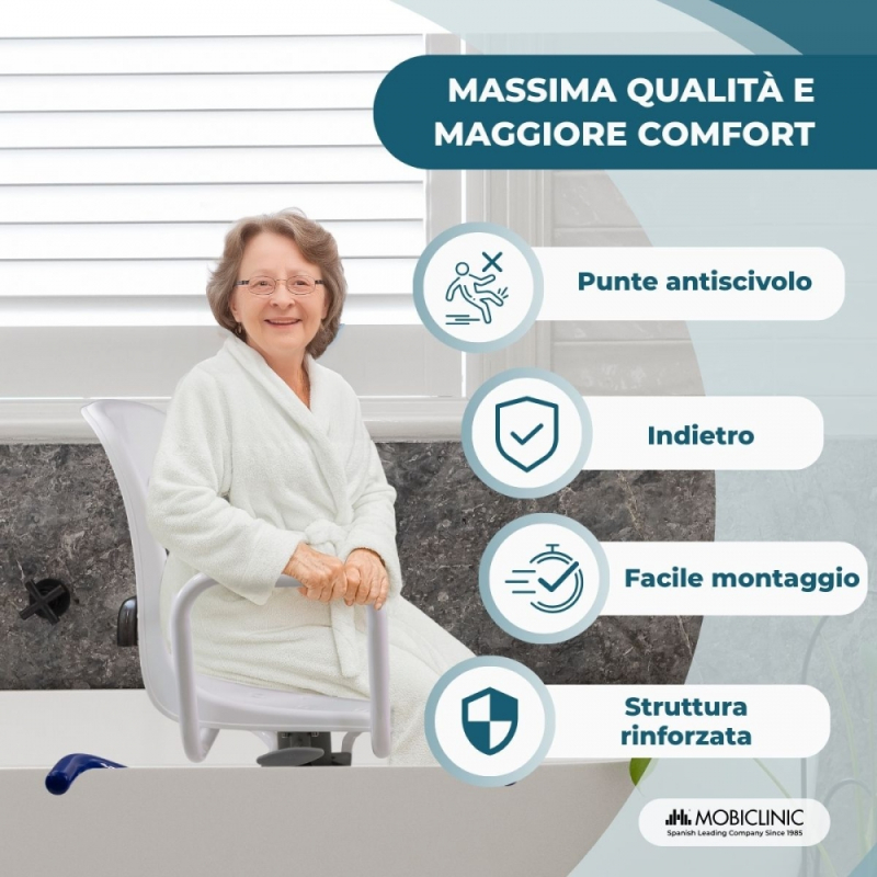 ADATTABILE : la sedia da bagno si adatta perfettamente. Non c'è bisogno di modificare il bagno: si adatta a te.