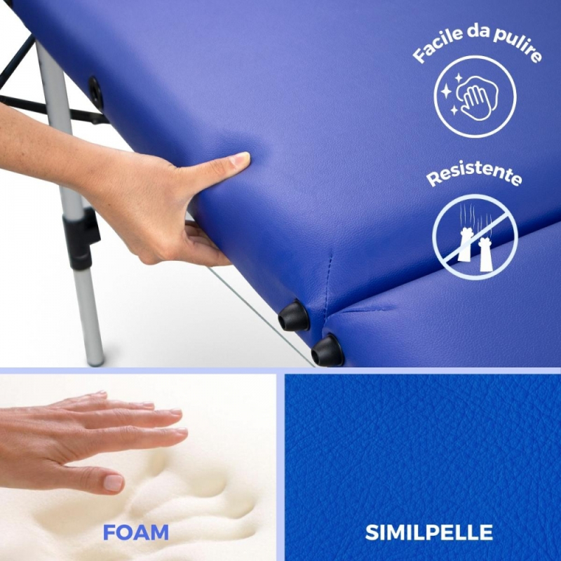 Lettino da massaggio portatile| Poggiatesta | Pieghevole| Blu| Alluminio| 186x60 cm |CA-01|Light | Mobiclinic