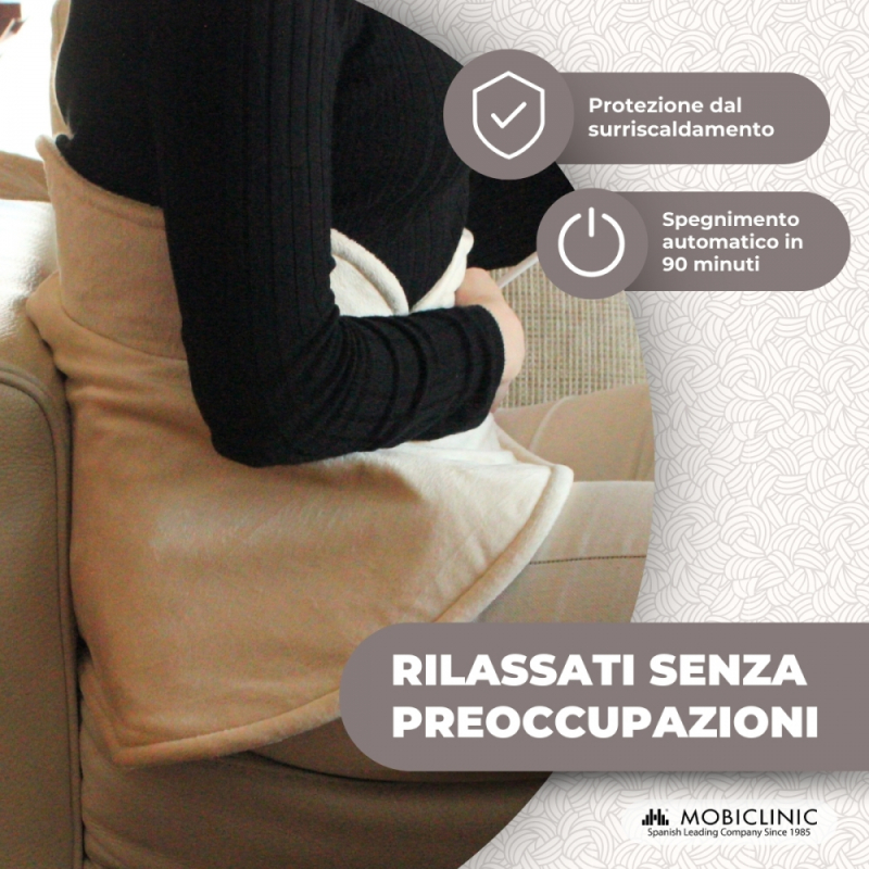 Cuscino cervicale termico | 62x60 cm | 3 livelli di calore | Spegnimento automatico | Mobiclinic