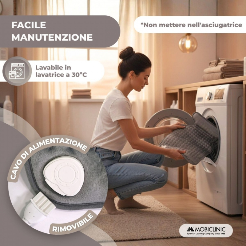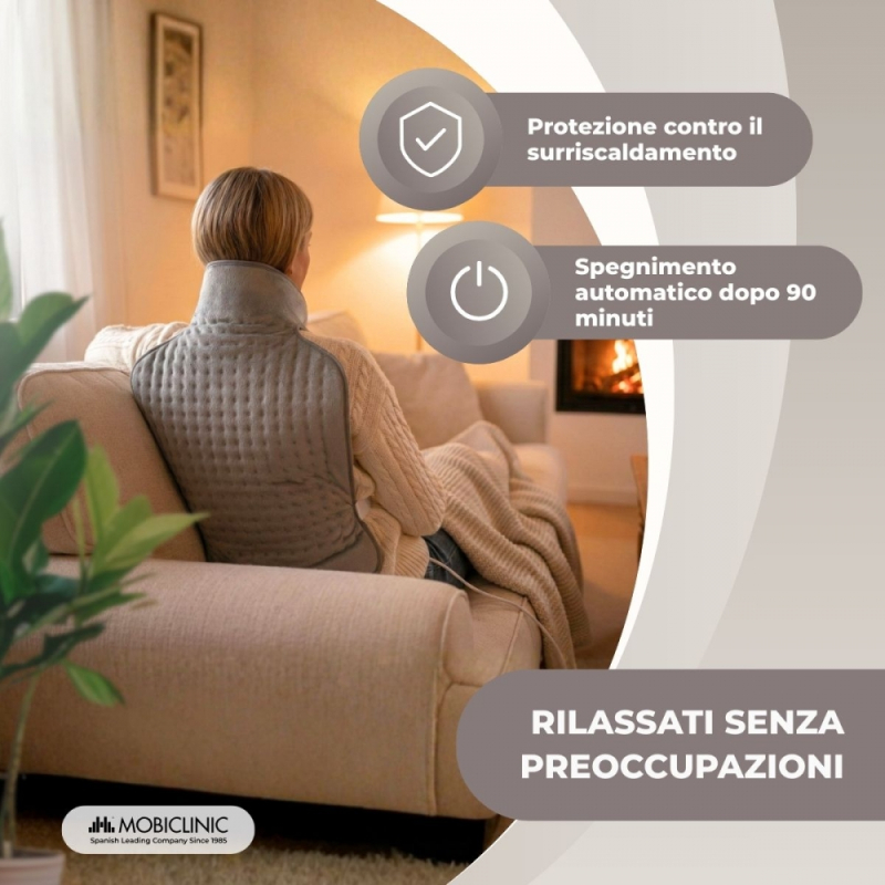 Cuscino termico dorsale e cervicale | A elettricità |62x43 cm | 3 livelli di calore | Spegnimento automatico | Mobiclinic