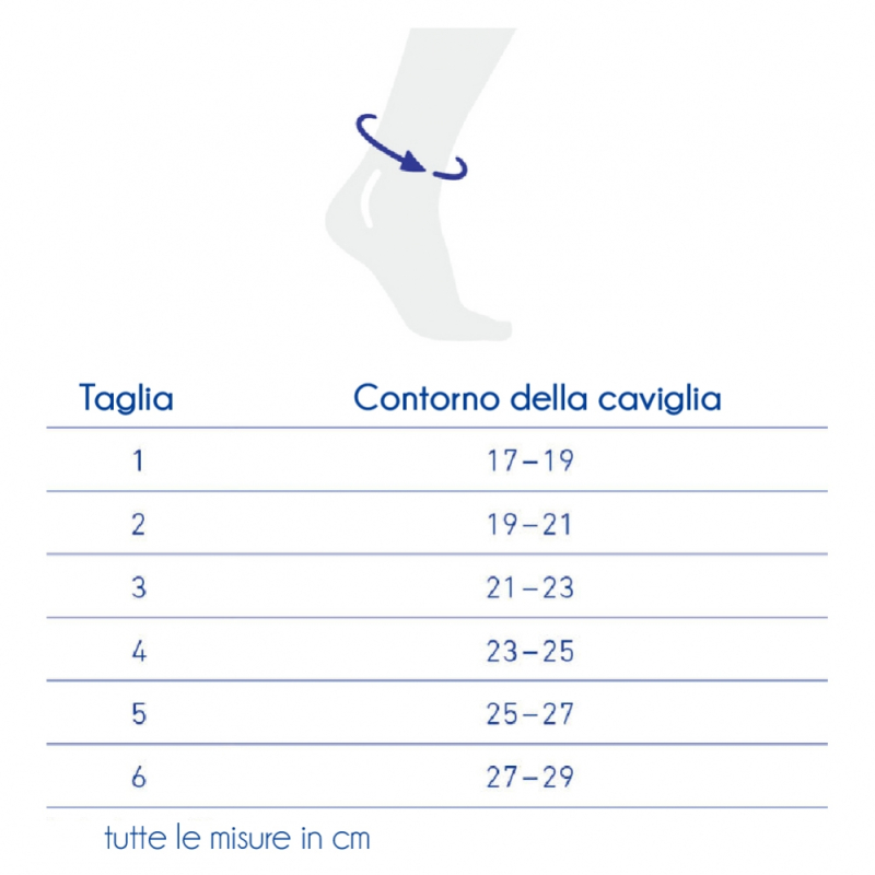 Scelta della dimensione: La dimensione dipende dal contorno della caviglia in centimetri.