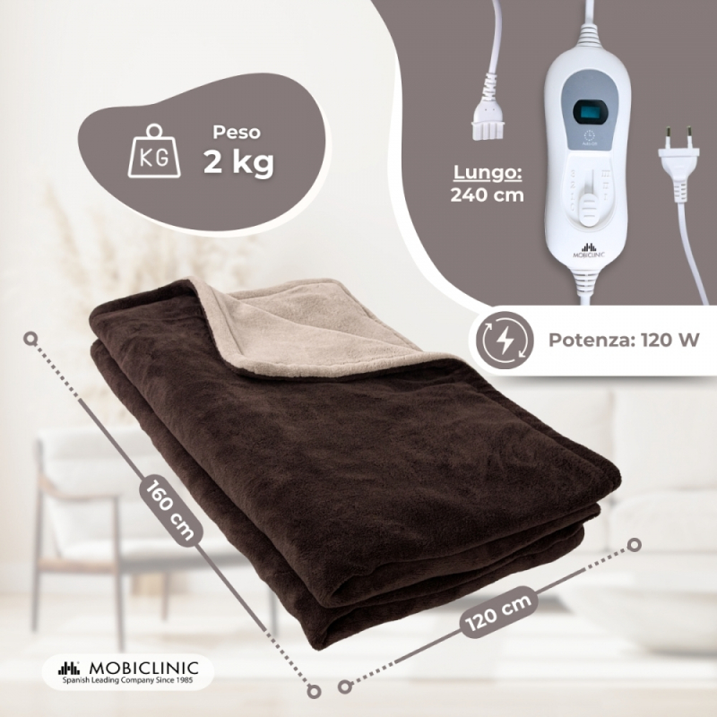 Coperta termica con telecomando | 160x120 cm |Marrone | Temperatura regolabile | Mobiclinic