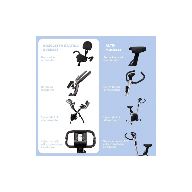 INCLUDE LA FASCIA DI RESISTENZA : con la bici EVEREST non solo potrai allenare le gambe ma potrai anche eseguire esercizi per la parte superiore del corpo grazie agli elastici inclusi.