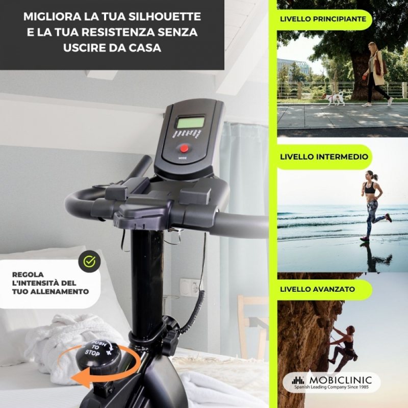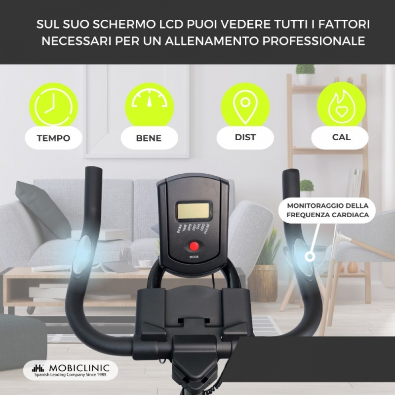 Cyclette | Regolabile | Controller di allenamento | Peso massimo 100 kg | Volano 6 kg | Teide | Mobiclinic