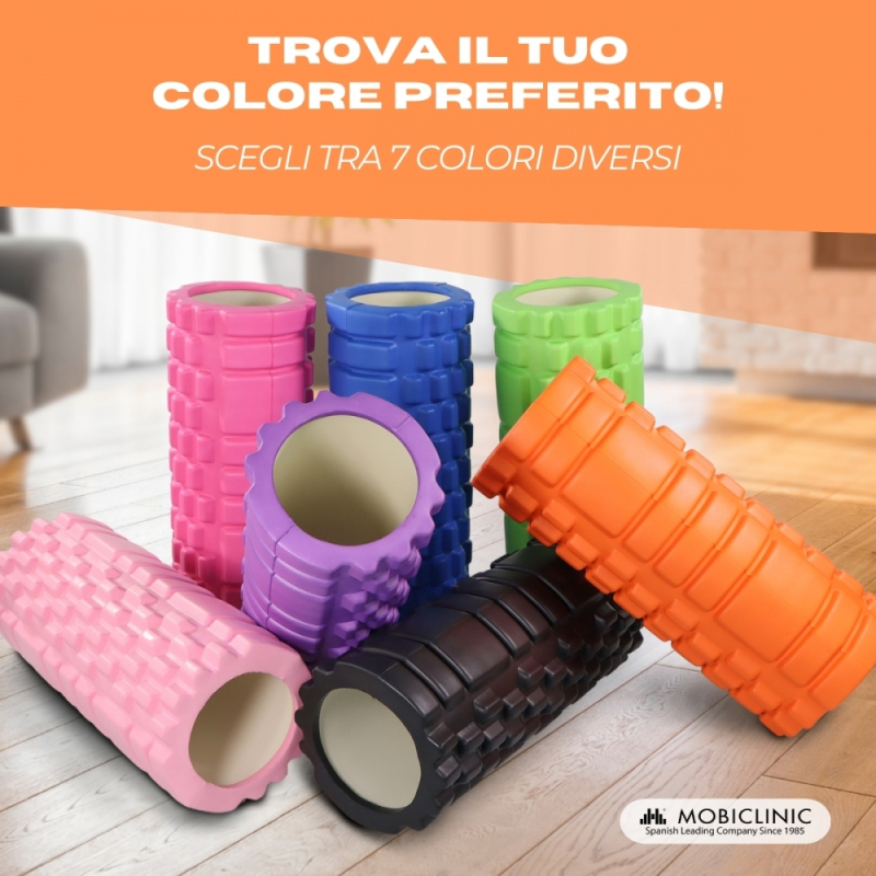 Questi roller in gomma EVA misurano 14 x 33 cm e sono disponibili in un'ampia varietà di colori vivaci. Aggiungi colore alla tua pratica sportiva, combinali come preferisci e crea il tuo kit sportivo personalizzato. Con FitRoller avrai in mano un conveniente dispositivo per il massaggio a lungo termine!