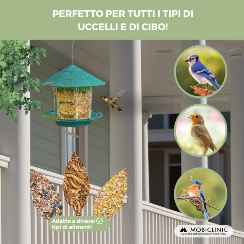 Questa mangiatoia per uccelli non si limita ad essere un distributore di cibo; Costituisce anche un'attrazione affascinante che attira un'ampia varietà di specie di uccelli . Offre un'esperienza unica di birdwatching, promuovendo così la diversità e incoraggiando la fauna locale . Goditi la vista degli uccelli che vengono a casa tua, avvicinati alla natura e alla vita degli uccelli