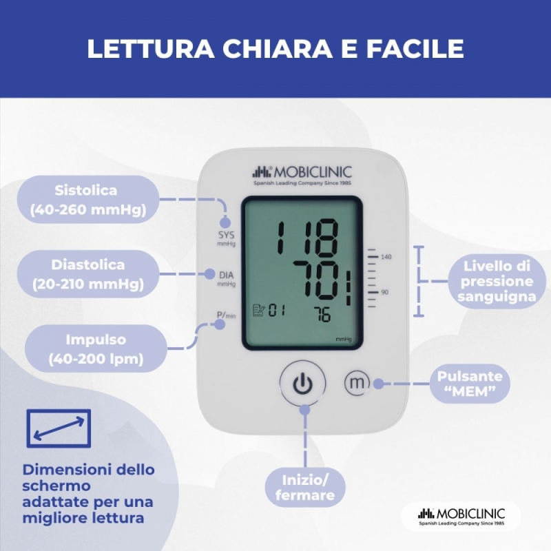Compra ora e ricevi su Mercoledì / Giovedì la prossima settimana Reso: 30 giorni per il reso. Garanzia: 2 anni.FACILE DA USARE: funziona con un unico pulsante centrale, rendendolo intuitivo e accessibile a qualsiasi utente. Inoltre, la sua base inclinata consente una migliore visibilità dello schermo LCD senza dover sollevare il dispositivo, rendendo la lettura ancora più facile.