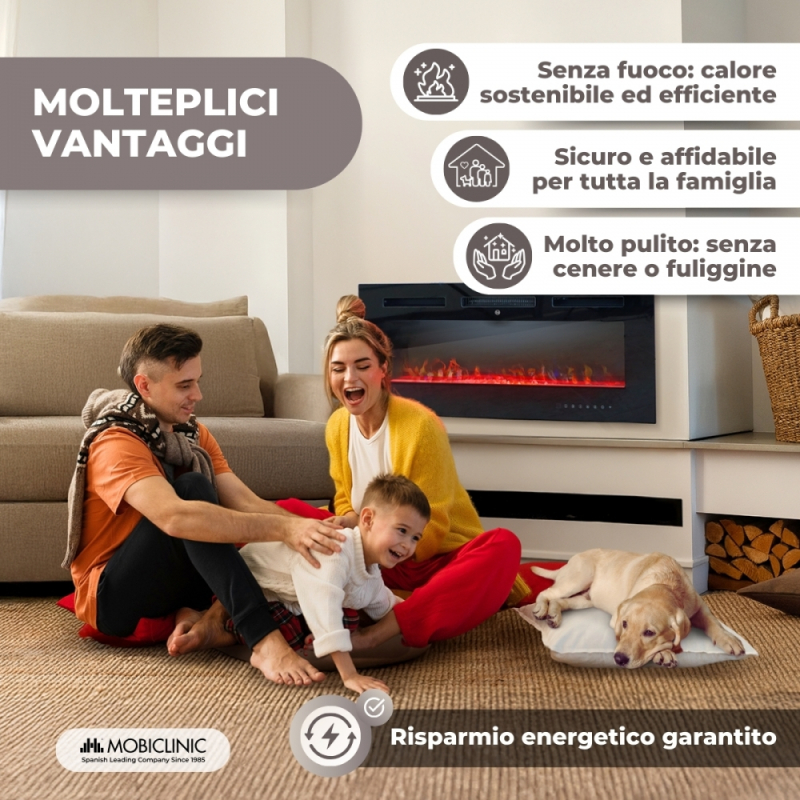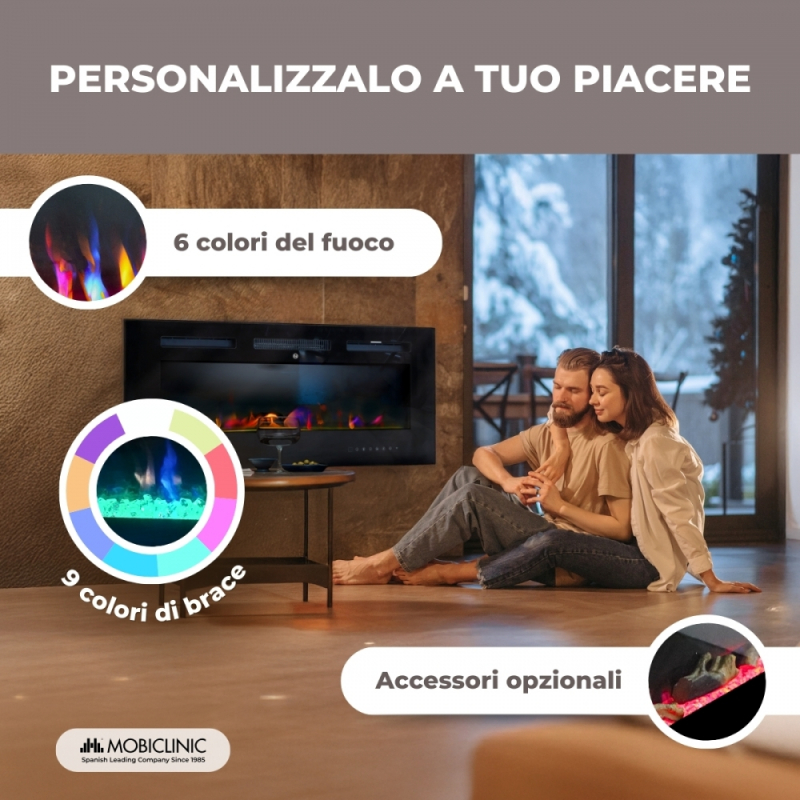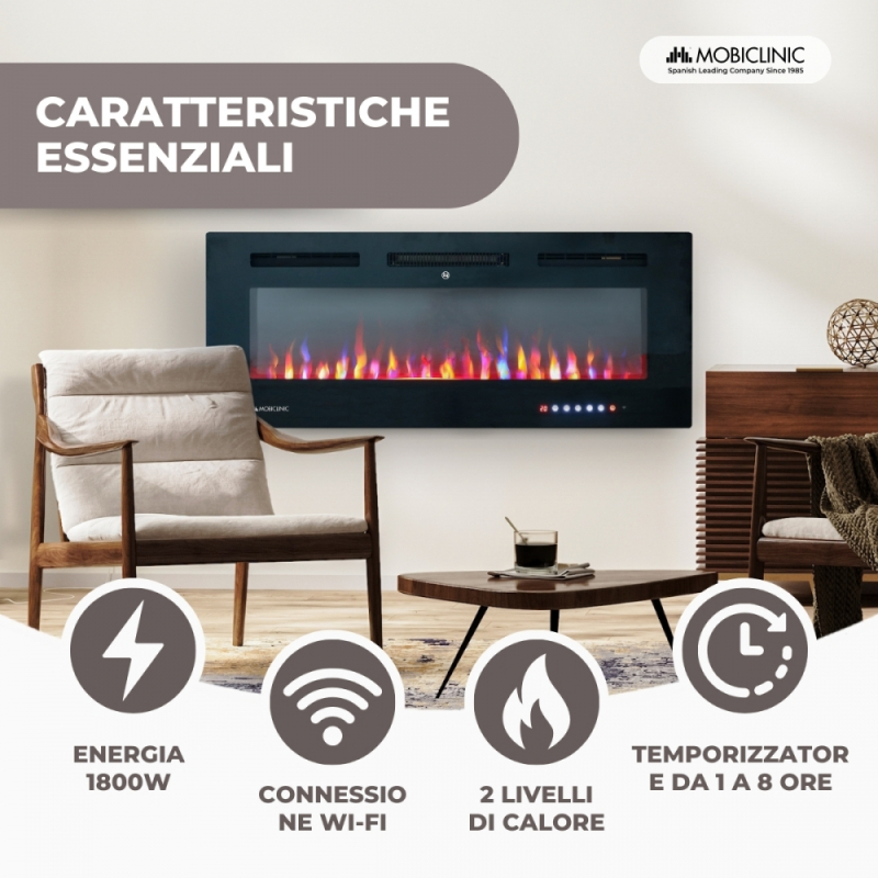 Camino elettrico | 1800W | Fiamma 3D | Protezione surriscaldamento | Controllo Wi-Fi | 106,5x12x43 cm | Fury | Mobiclinic