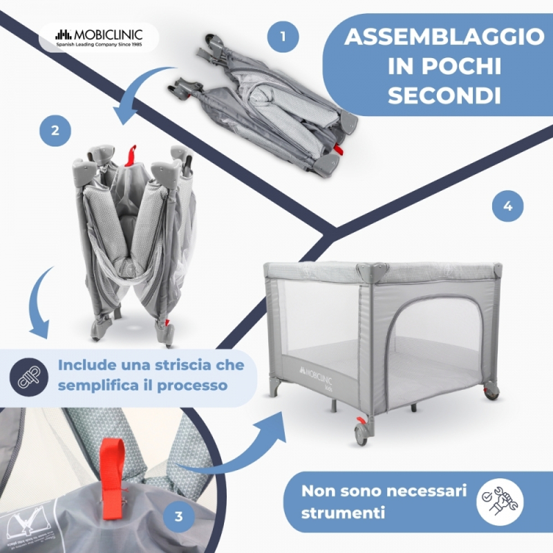 Parque de juegos y cuna | Plegable | Portátil | Bolsa de transporte | Ruedas con freno | Sleepland | Gris | Mobiclinic Lidia . El montaje es súper fácil, no necesitas herramientas ni complicaciones. En pocos minutos está listo para usarse 19/02/2025 |