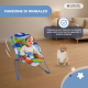 Per quanto riguarda il riposo, è dotato di un sistema di vibrazione rilassante che aiuta a calmare il bambino. Questa caratteristica è perfetta per creare un ambiente rilassante e confortevole. L'amaca include anche giocattoli interattivi che stimolano lo sviluppo sensoriale del bambino, fornendo stimoli visivi e sonori per attirare la sua attenzione.