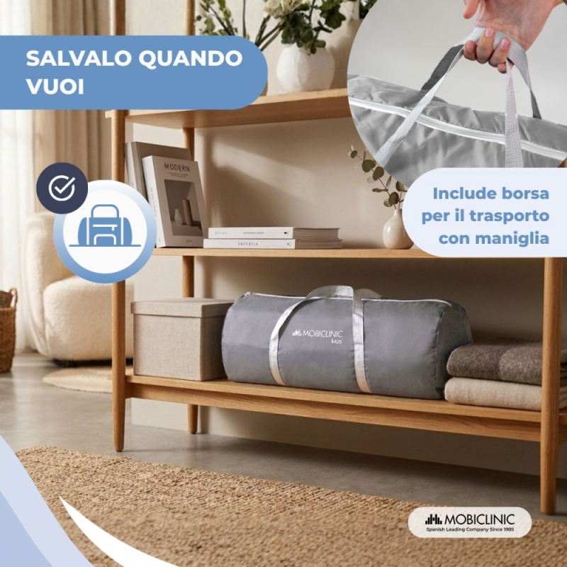 Il suo design portatile e pieghevole, dotato di borsa per il trasporto, lo rende la scelta ideale da portare ovunque.