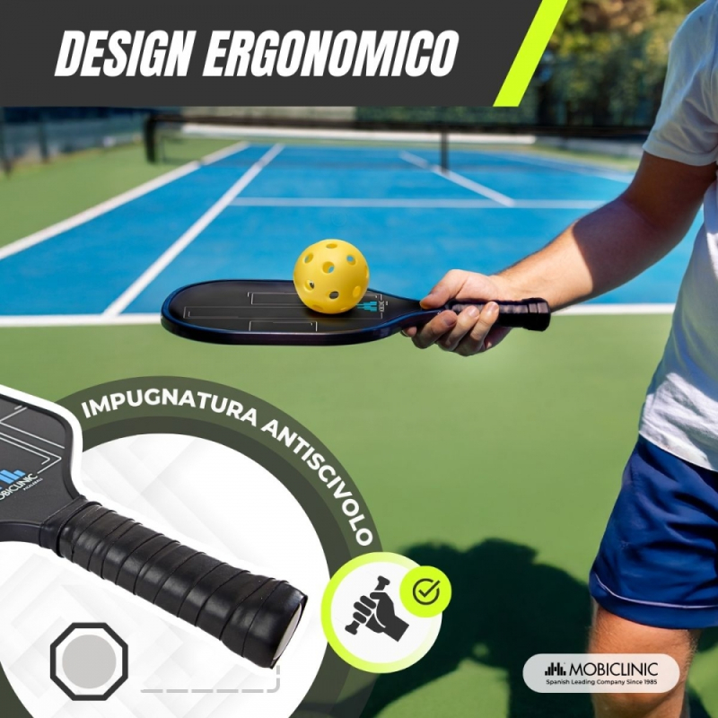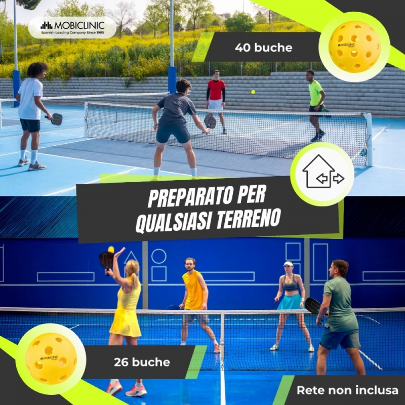 Set da pickleball | 2 racchette in fibra di vetro | 4 palline | Borsa per il trasporto | Grip antiscivolo | Mobiall | Mobiclinic