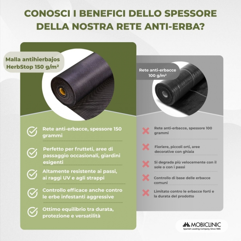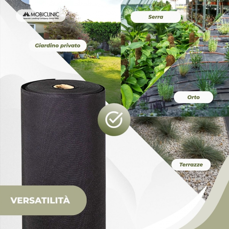 Rete anti-erbacce | 150 g/m² | Resistente ai raggi UV | Traspirante e permeabile | 1 x 5 m | HerbStop | Mobiclinic