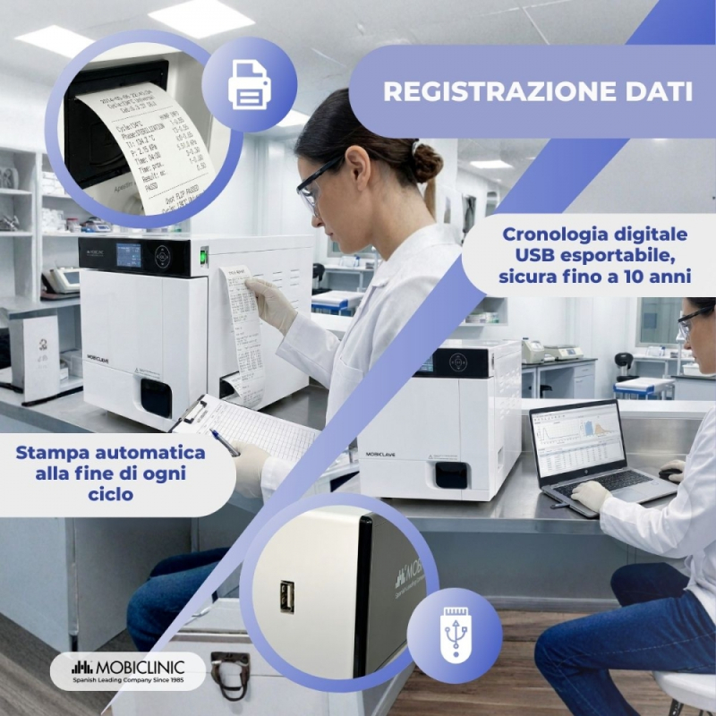 Autoclave di classe B 17L | Sterilizzazione a 360º al 99% | LCD | USB, SD e stampante | Mobiclave Plus | Mobiclinic