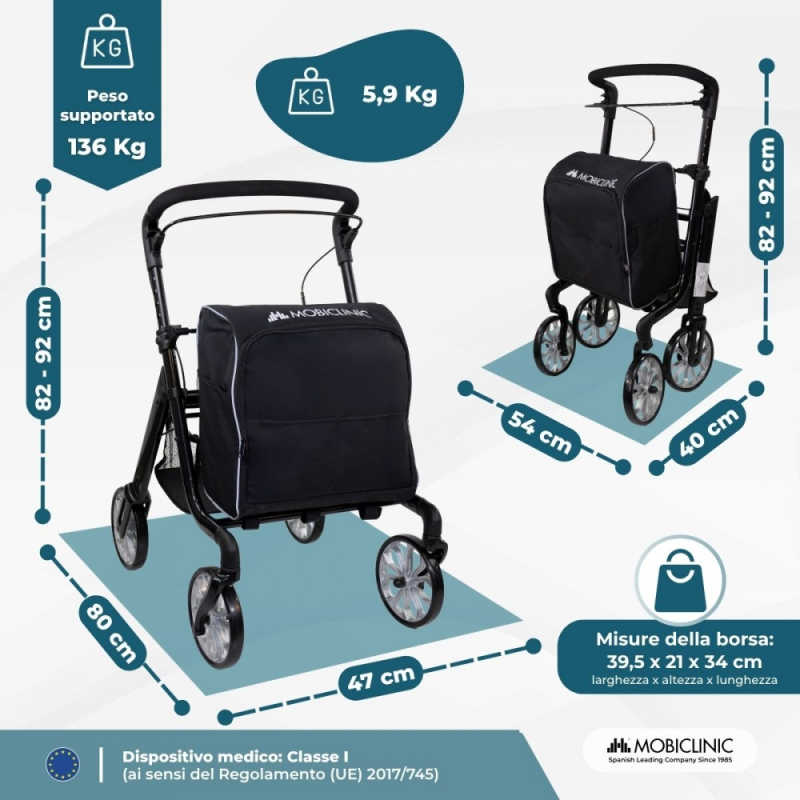 Deambulatore pieghevole | Carrello della spesa | Sistema frenante | Altezza regolabile | Borsa XXL | Formen | Mobiclinic