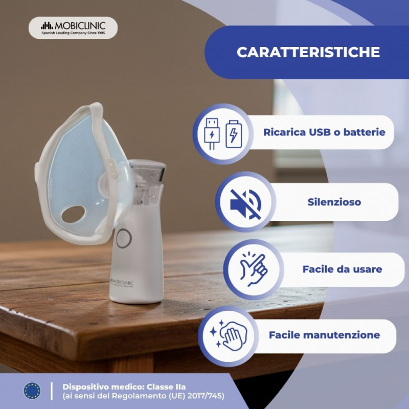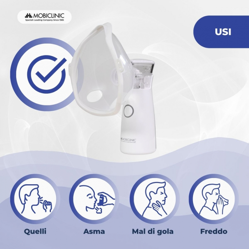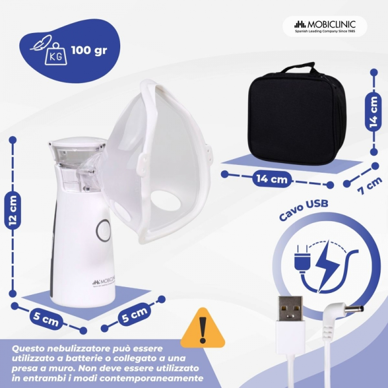 Nebulizzatore a rete | Portatile | 2 maschere + boccaglio | Custodia per il trasporto | Wireless e USB | Nebumobi1 | Mobiclinic