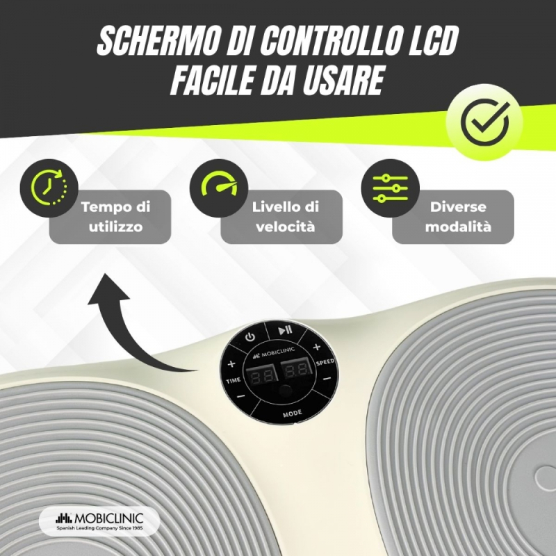 Piattaforma vibrante | 99 livelli di velocità | 9 programmi | Fasce elastiche | Schermo e telecomando | Karol | Mobiclinic