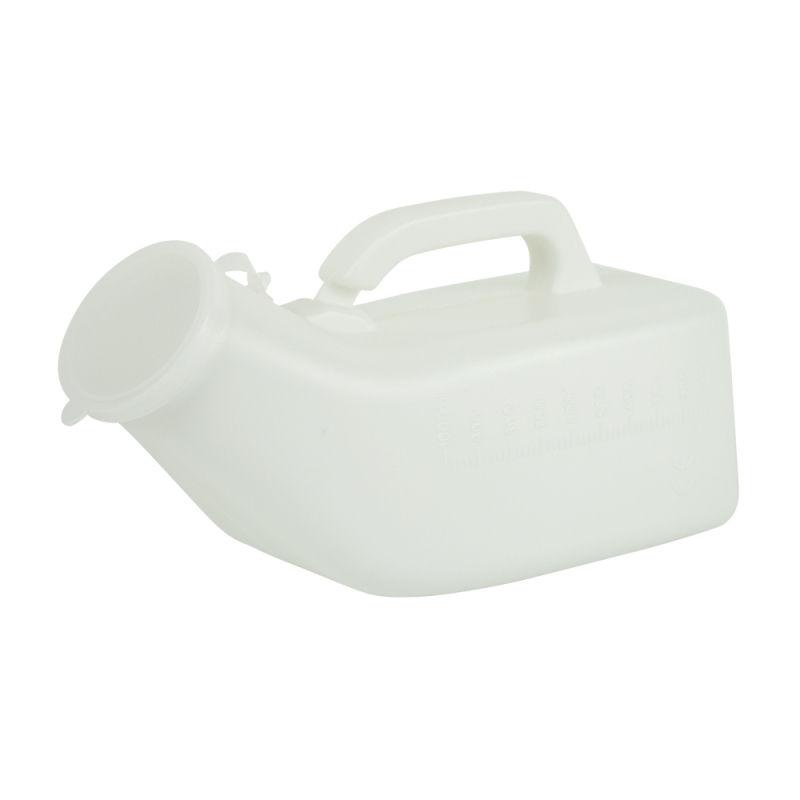 Urinaal met een inhoud van 1 liter. Ontworpen voor mensen met urine-incontinentie of die bedlegerig zijn, hetzij door een chronische ziekte of omdat ze voor korte of langere tijd een operatie of revalidatie ondergaan. Het is een zeer gewaardeerd product bij oudere vrouwen.