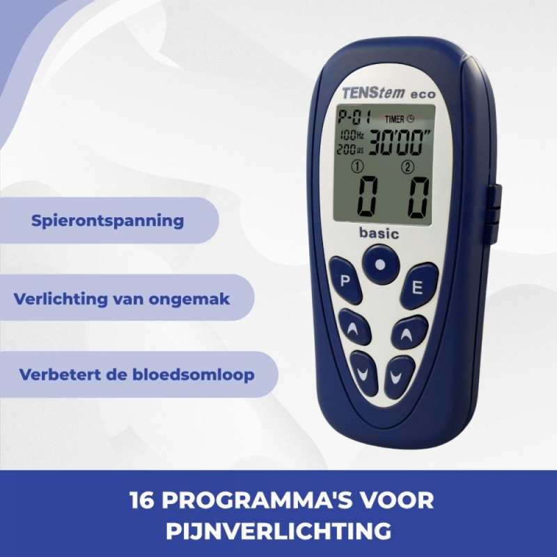 Draagbare elektrostimulator | Pijnverlichting met elektrode | 16 programma's | TENS eco basic