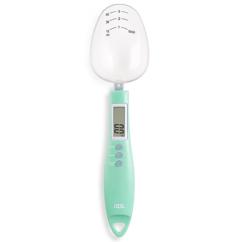 De lepel met digitale schaalverdeling geeft u informatie over de hoeveelheid in ml of in eetlepels. Bovendien is het lepeldeel afneembaar.