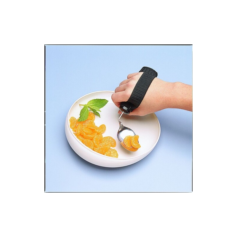 This hand adapter is made of a soft fabric and has been especially designed for people with limited or weak grip when it comes to holding daily life utensils such as cutlery, pens, etc., as it incorporates a velcro tape that facilitates the grip.