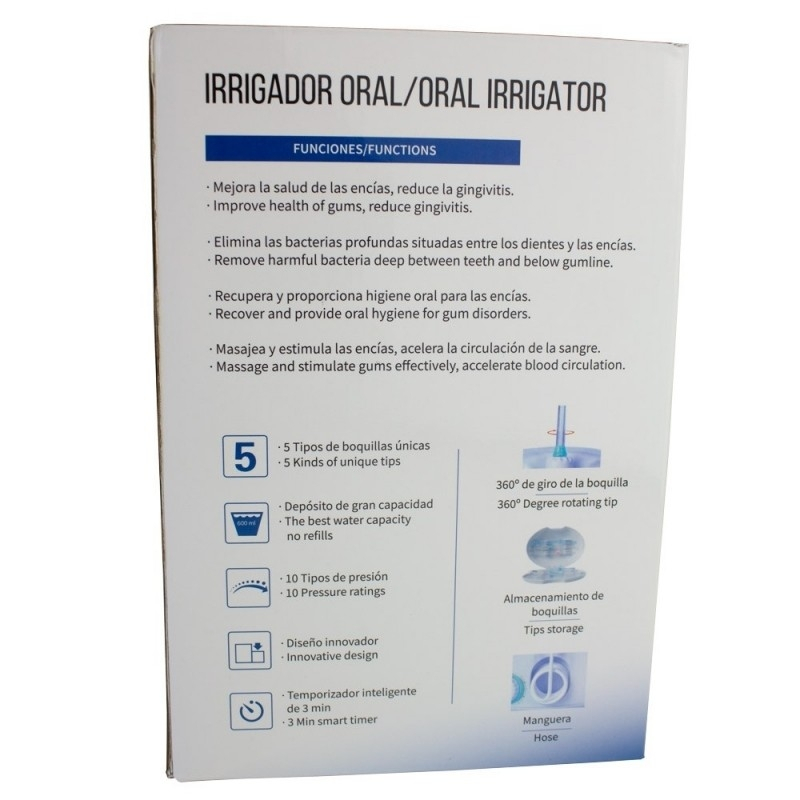 Monddouche ontwikkeld voor extra hygiëne van onze tanden, tandvlees, tong en de rest van de mondholte. De reinigingsapparatuur bestaat uit 7 koppen (parodontale kop, hogedrukkop, tongreinigingskop, tandplakkop, orthodontische kop), een reservoir en een afzuigapparaat.