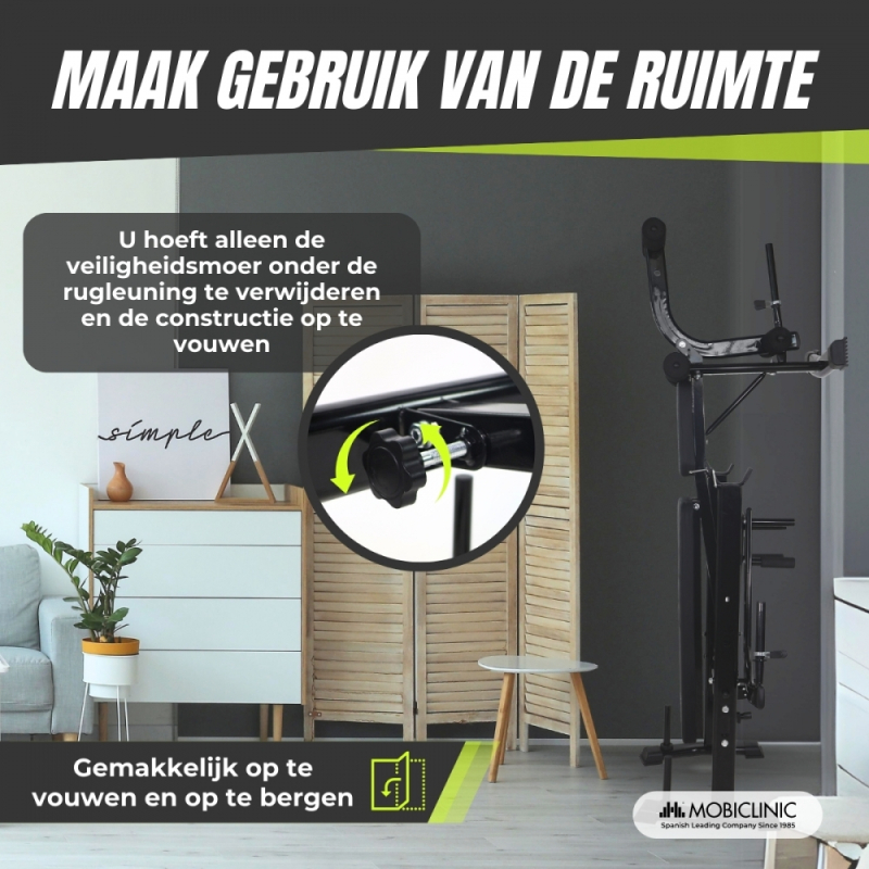 OPVOUWBAAR EN GEMAKKELIJK OP TE BERGEN : Deze bank is gemakkelijk opvouwbaar, waardoor hij gemakkelijk in elke hoek van het huis kan worden opgeborgen. Ondanks de robuuste structuur en het maximale draagvermogen van 250 kg kan hij gemakkelijk worden verplaatst en past hij zich aan elke ruimte aan zonder de kwaliteit van de training in gevaar te brengen.