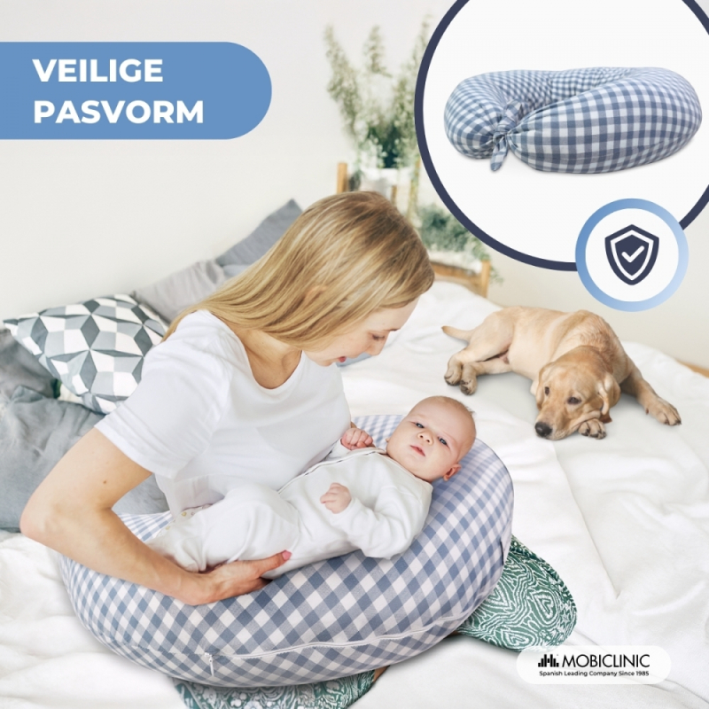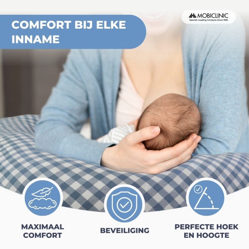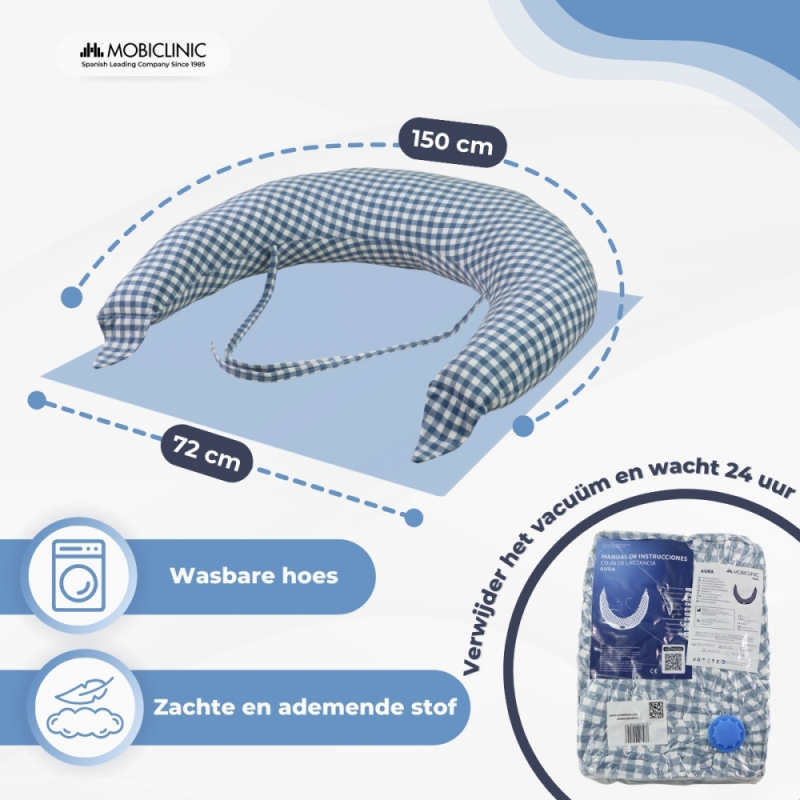 XXL voedingskussen | 3-in-1 | Meerdere posities | Verstelbare bandjes | Machinewasbaar | Vichy-print | Aura | Mobiclinic