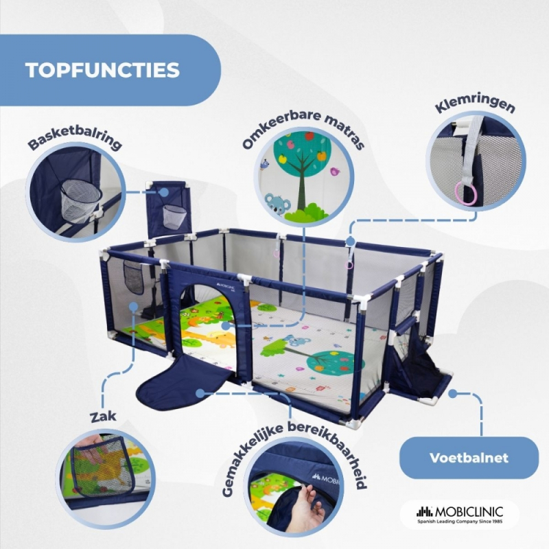 |  Parque de juegos infantil | Alfombra | 128x233 cm | Anillas | Canasta y red de fútbol | Bolsa Transporte | Kidland | Mobiclinic Marta . Lo compramos para nuestro hijo de 3 años y le encanta. Puede trepar, lanzar la pelota y correr dentro del parque. Muy recomendable si buscas algo seguro y divertido. 19/07/2025 |