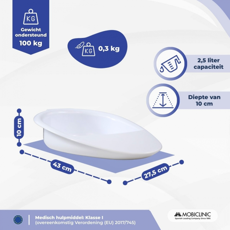 Cuña sanitaria | Capacidad 2500 ml | Ligera y Resistente | Anatómica | Uso doméstico y clínico | Seren | Mobiclinic Matilde . La capacidad de 2500 ml es más que suficiente, evita tener que vaciarla con frecuencia. 22/09/2025 |