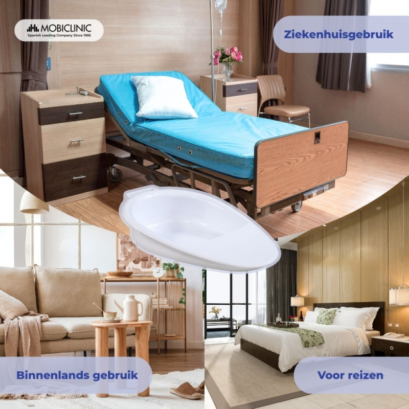 HYGIËNISCH EN HERBRUIKBAAR: Het gladde, waterdichte polypropyleenmateriaal kan na elk gebruik worden gedesinfecteerd en gereinigd met warm water en milde zeep. De eendelige structuur voorkomt bacteriegroei en waarborgt zo de hygiëne en veiligheid van de patiënt.