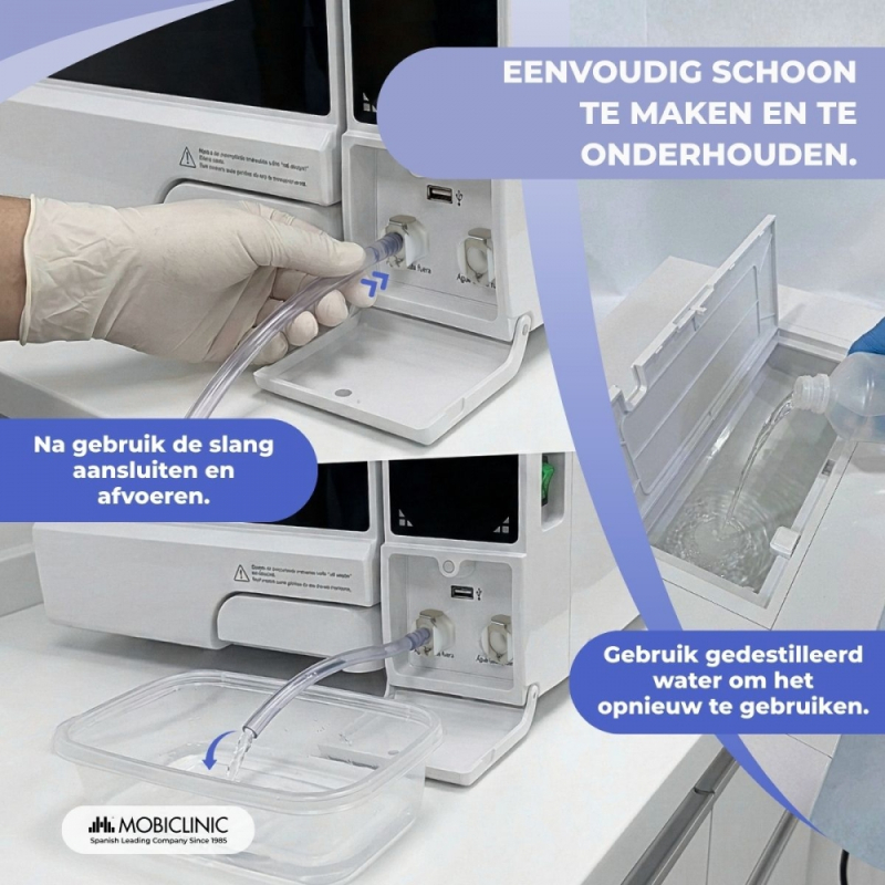 De Mobiclinic 8-liter sterilisatieautoclaaf is een professionele oplossing die complete, effectieve en veilige sterilisatie biedt en is ontworpen voor alle soorten klinische omgevingen. Hij gebruikt 99% verzadigde stoom om bacteriën, virussen, schimmels en sporen te inactiveren , waardoor een betrouwbaar reinigingsproces gegarandeerd is, zelfs in de meest veeleisende omgevingen.