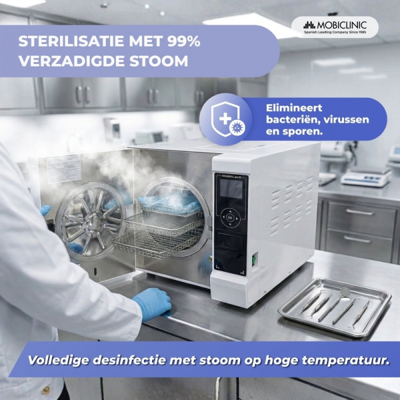Klasse B 12L Autoclaaf | 99% Desinfectie | LCD | Printer en USB | Programmeerbare cycli | Mobiclave | Mobiclinic