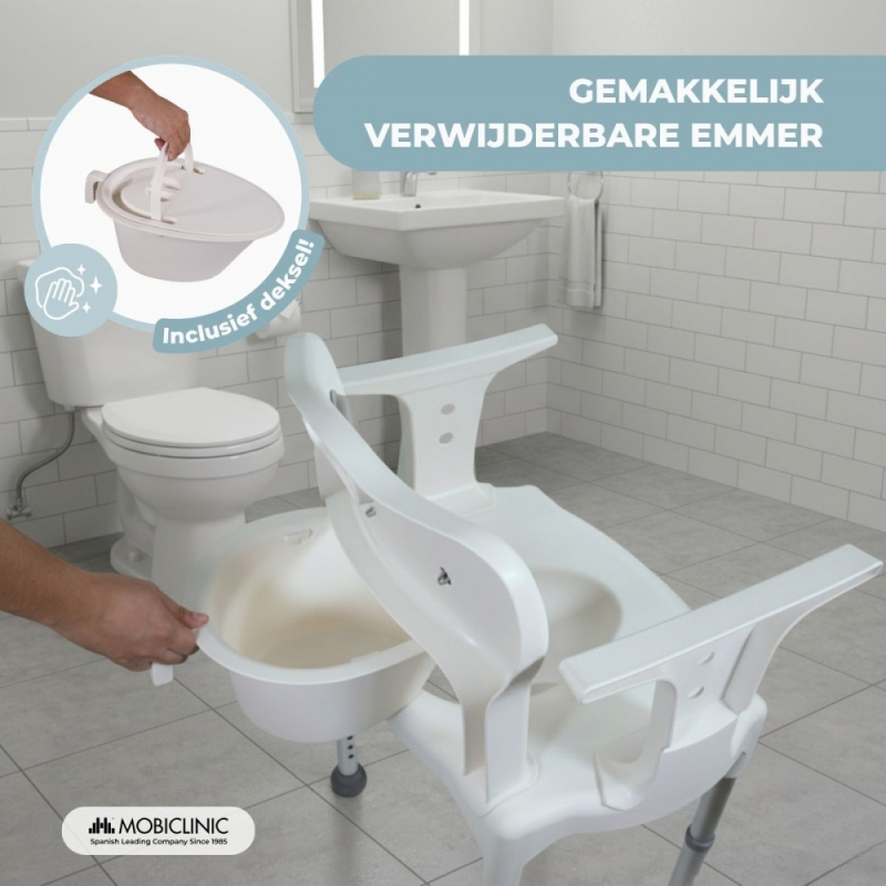 Commode stoel | Hoogte verstelbaar | Gevoerde zitting en rugleuning | Antislip | 3500 ml | Guido | Mobiclinic