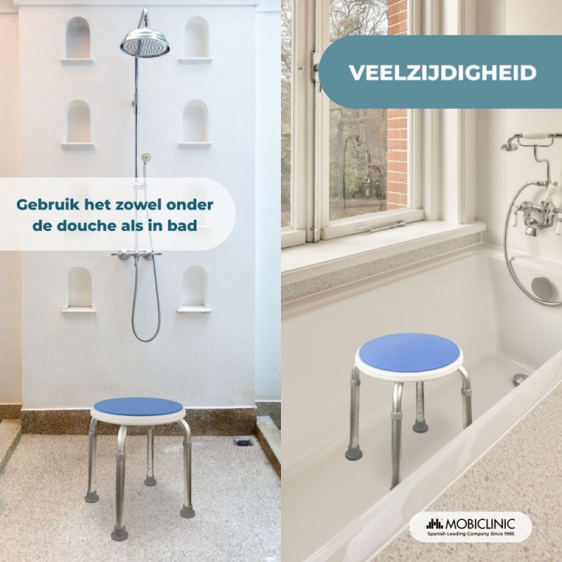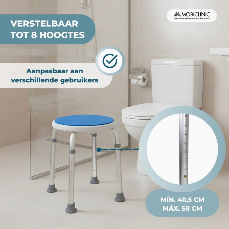 Badkamerkruk | Hoogteverstelbaar | Max. 100 kg | Antislip EVA-doppen en oppervlak | Foco | Mobiclinic