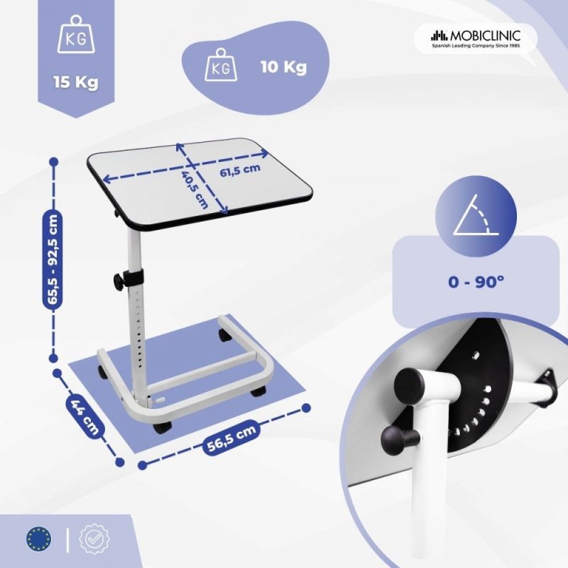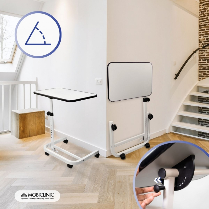 |  Mesa auxiliar ajustable | 9 alturas | Tablero con inclinación | Plegable | Ruedas con freno | Base en C | Cumbre | Mobiclinic Irene . Diseño cómodo y moderno. La base en forma de C facilita colocarla cerca del sillón o la cama sin molestias. 06/10/2025 |