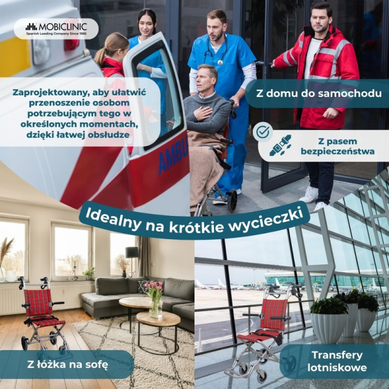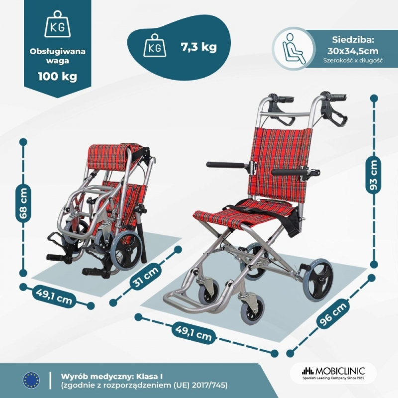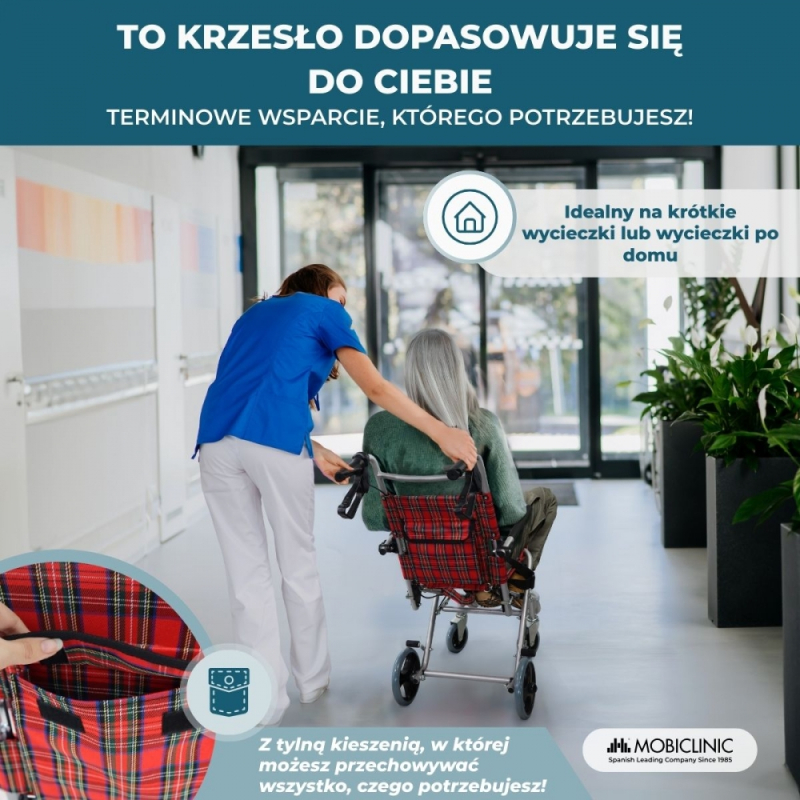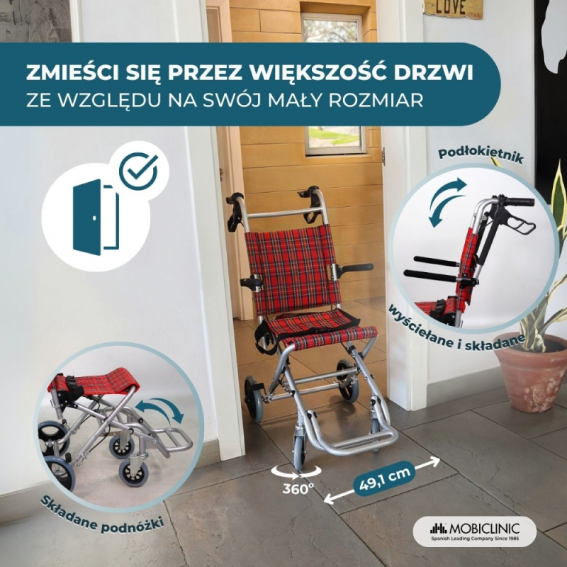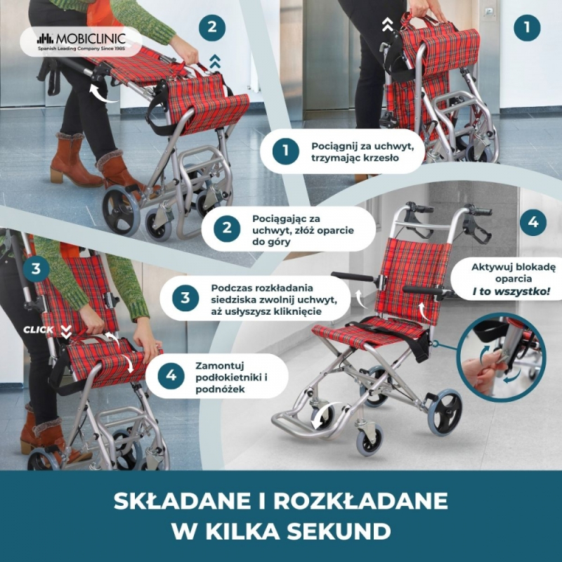Dzięki łatwemu składaniu i lekkości można go transportować w dowolne miejsce przy minimalnym wysiłku (w zestawie również torba do przenoszenia). Składany wózek inwalidzki umożliwia wygodne przechowywanie go w domu, a nawet złożenie, jeśli trzeba umieścić go w ciasnych miejscach.