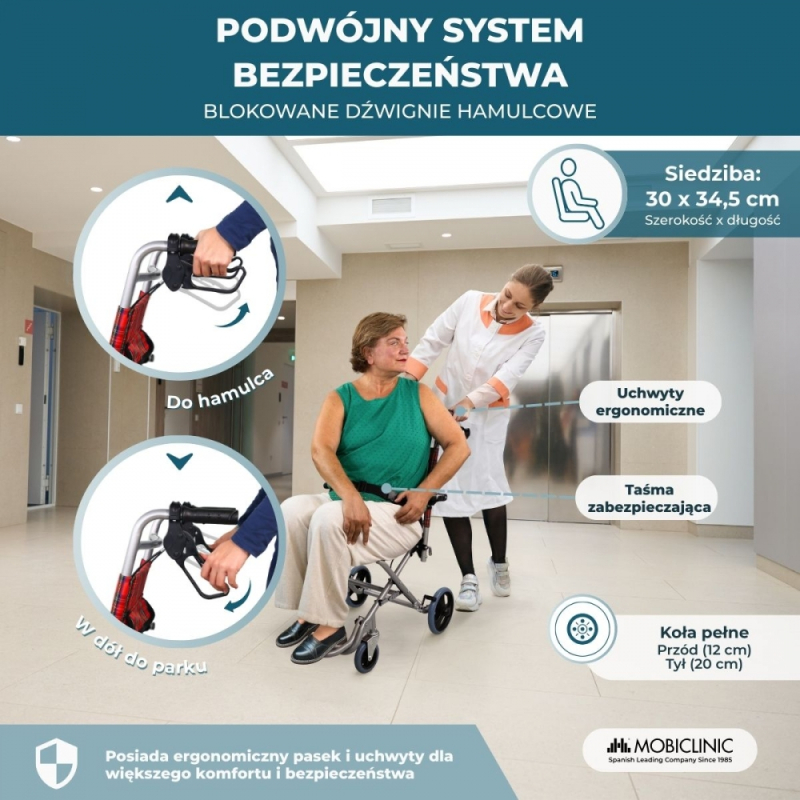 Podwójny drążek dolny, który posiada, zapewnia większe poczucie bezpieczeństwa, będąc jednocześnie wykonanym z materiału ognioodpornego. Jego ergonomiczne oparcie i siedzisko zapewniają maksymalny komfort zarówno pacjentom, jak i ich towarzyszom, ponieważ umożliwiają podniesienie zarówno podłokietników, jak i podnóżków. Krótko mówiąc, jest to idealne krzesło ortopedyczne, jeśli szukasz bezpieczeństwa, komfortu i łatwości użytkowania.