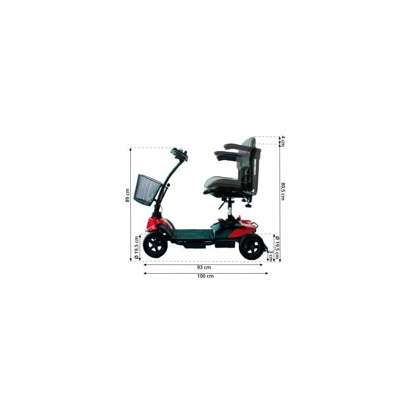 Skuter dla niepełnosprawnych | Auton. 10 km | 4 koła | Kompaktowy i wymienny | 12V | Czerwony | Virgo | Mobiclinic