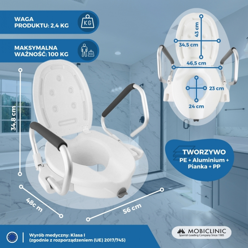 Kup teraz i odbierz go na Wtorek Zwrot 30 dni na zwrot w przypadku wad. Gwarancja: 3 lataKOMFORT I WYPOCZYNEK: podnośnik toaletowy posiada wygodne, składane podłokietniki ułatwiające siadanie i wsiadanie na toaletę, a także zapewniające stabilność i pewność siebie użytkownika.