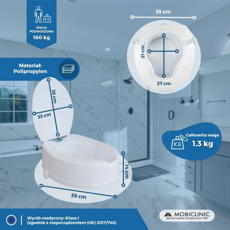 toaleta windy ludzi z trudności z wejściem lub wstawania z toalety będzie miał ich największym sojusznikiem dzięki jego 14 cm mogą siedzieć i stać komfortowo. Dzięki swojej ergonomicznej konstrukcji nie odczuje żadnego dyskomfortu ani dyskomfortu podczas użytkowania, posiada również otwory do łatwego czyszczenia obszarów intymnych. Największa To Booster WC jest idealny dla osób, które mają trudności podczas wchodzenia lub wstawanie z WC. Dzięki prostej ergonomicznej konstrukcji z pokrywą, zapewnia dyskrecję i komfort trzeba w łazience.