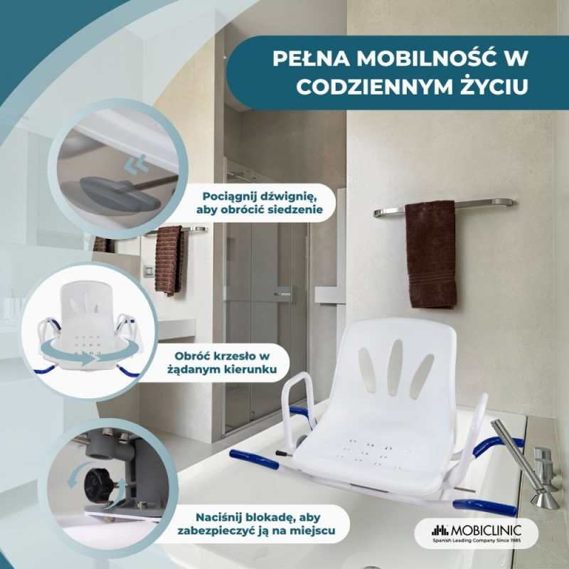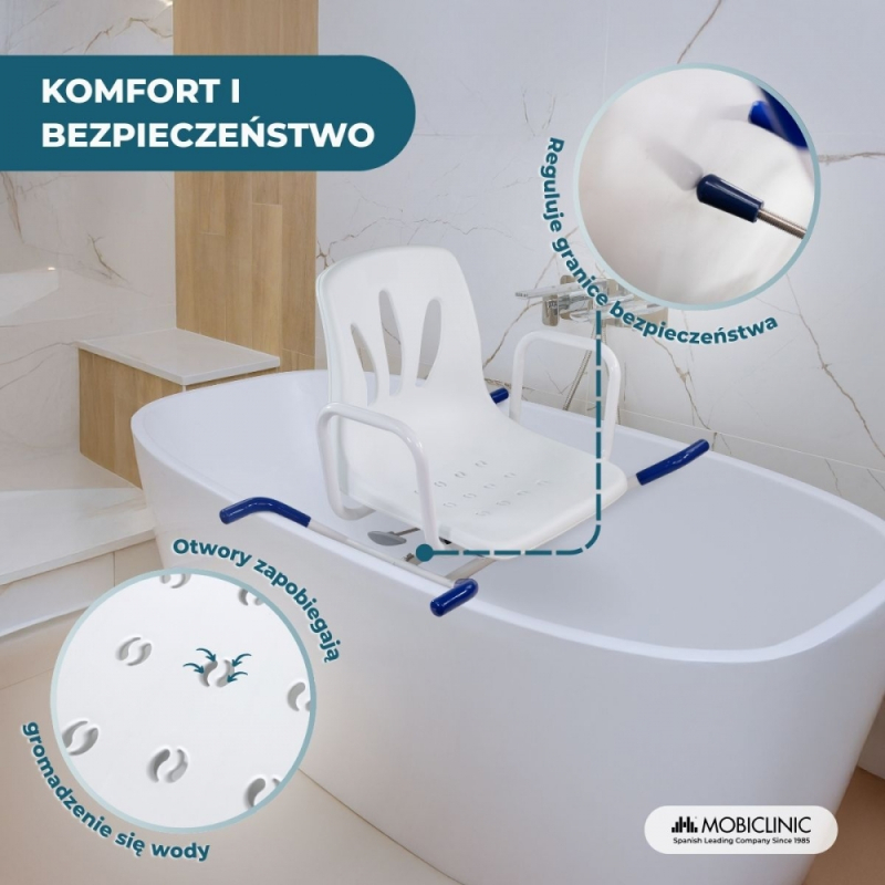 Mobiclinic, obrotowy fotel kąpielowy, podłokietniki i oparcie, anatomiczne, Lake