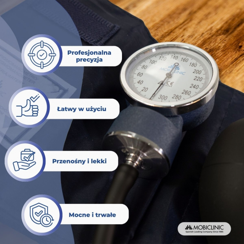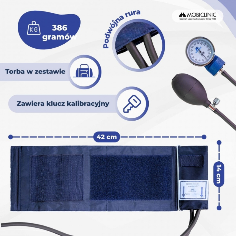 Aneroid ciśnieniomierza | Dwa wyjścia | Wygodny | Możliwość dostosowania | Niebieski | Mobiclinic